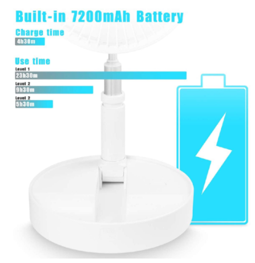 PORTABLE FOLDING STAND FAN / USB DESK FAN WITH 7200MAH RECHARGEABLE BATTERY